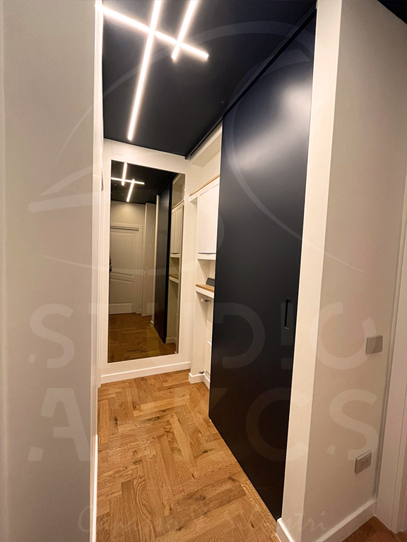 Ristrutturazione di un appartamento dove abbiamo ottimizzato lo spazio del disimpegno e creando un secondo bagno in camera. L’intervento inoltre ha coinvolto la sostituzione del pavimento, il rifacimento dei bagni e della parte impiantistica. Sono stati scelti con cura colori e finiture, inserendo nel progetto anche la scelta e la ricerca dell’arredo. Una ristrutturazione seguita in ogni fase, dal progetto alla realizzazione.